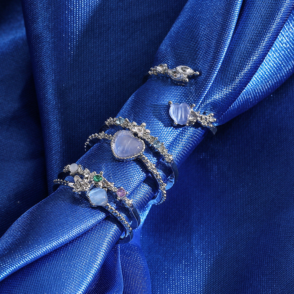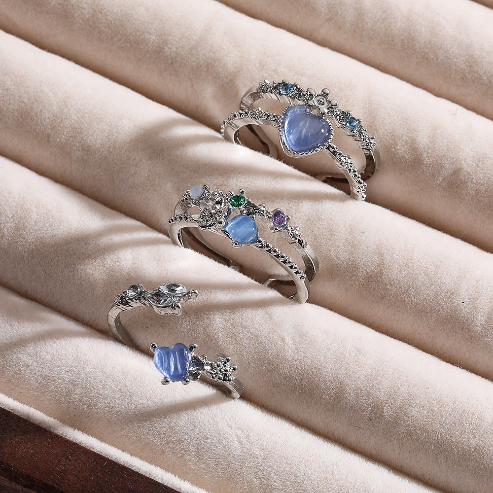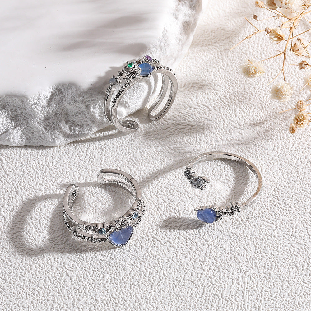 Wholesale Love Moonlight Sea Blue Zircon Open Ring