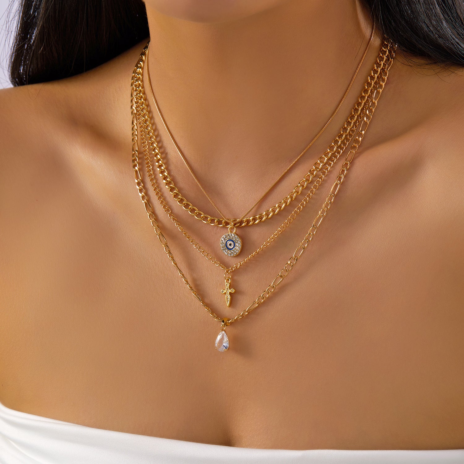 Wholesale Multi-Layer Chain Clavicle Chain cross Diamond Sweater Necklace