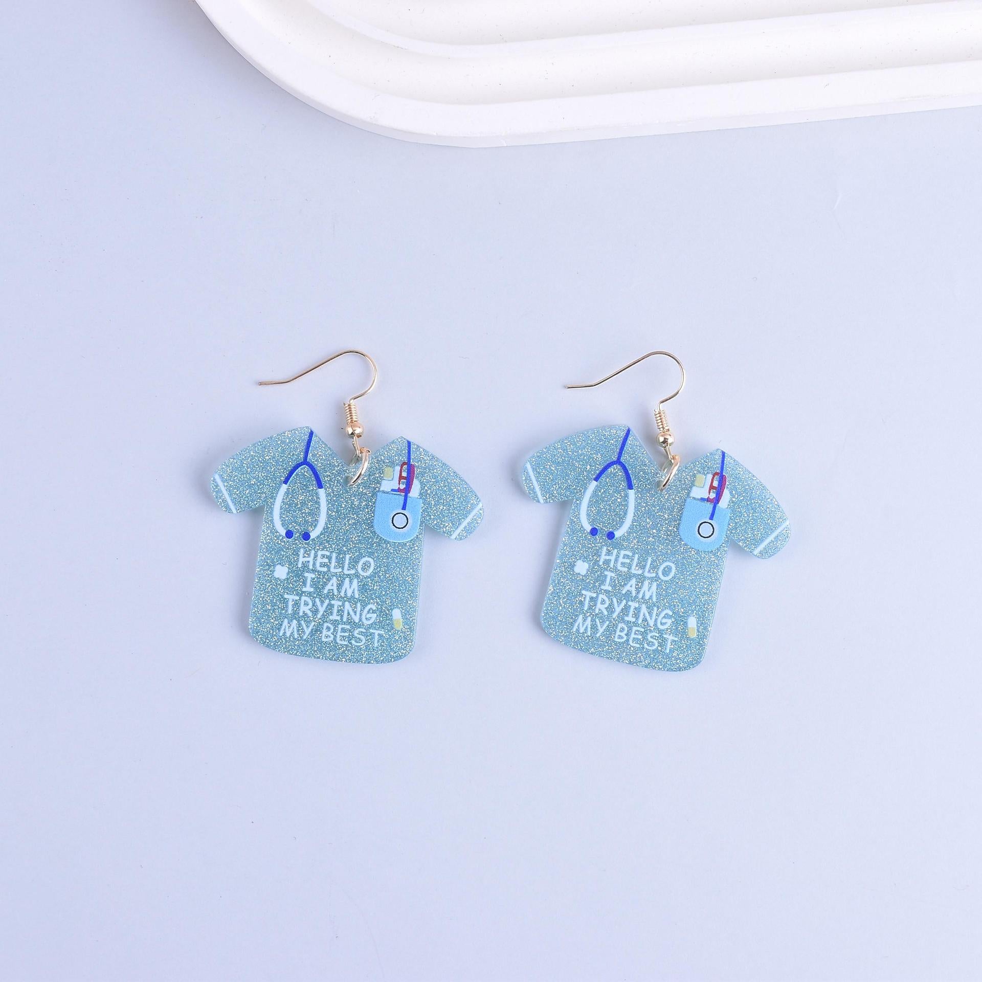 Wholesale Acrylic Nurse Day Earrings Pink Blue Earrings Syringe Nurse Cap Earrings