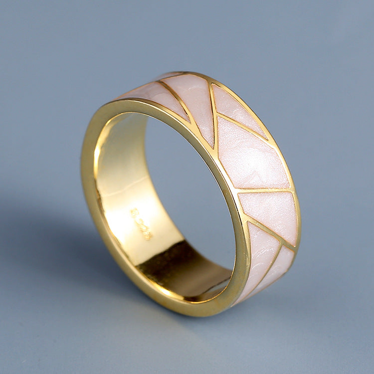 Wholesale Retro Enamel Ring Plated with 18K Gold Geometric Texture Zircon Ring