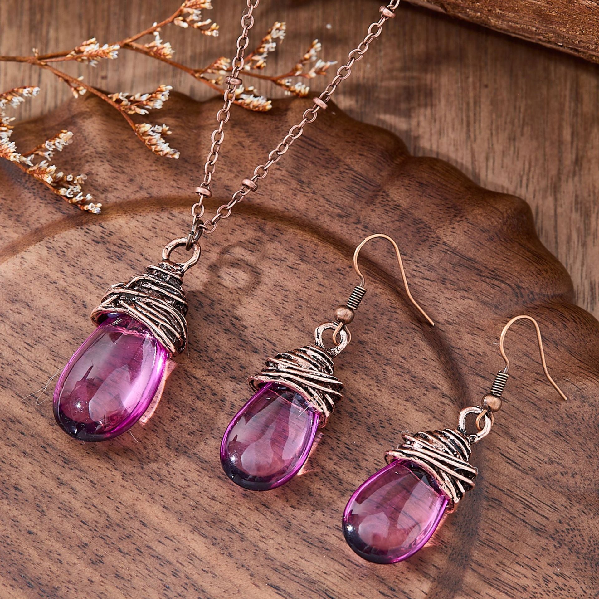 Wholesale Retro Water Drop Lantern Alloy Earrings Necklace Set