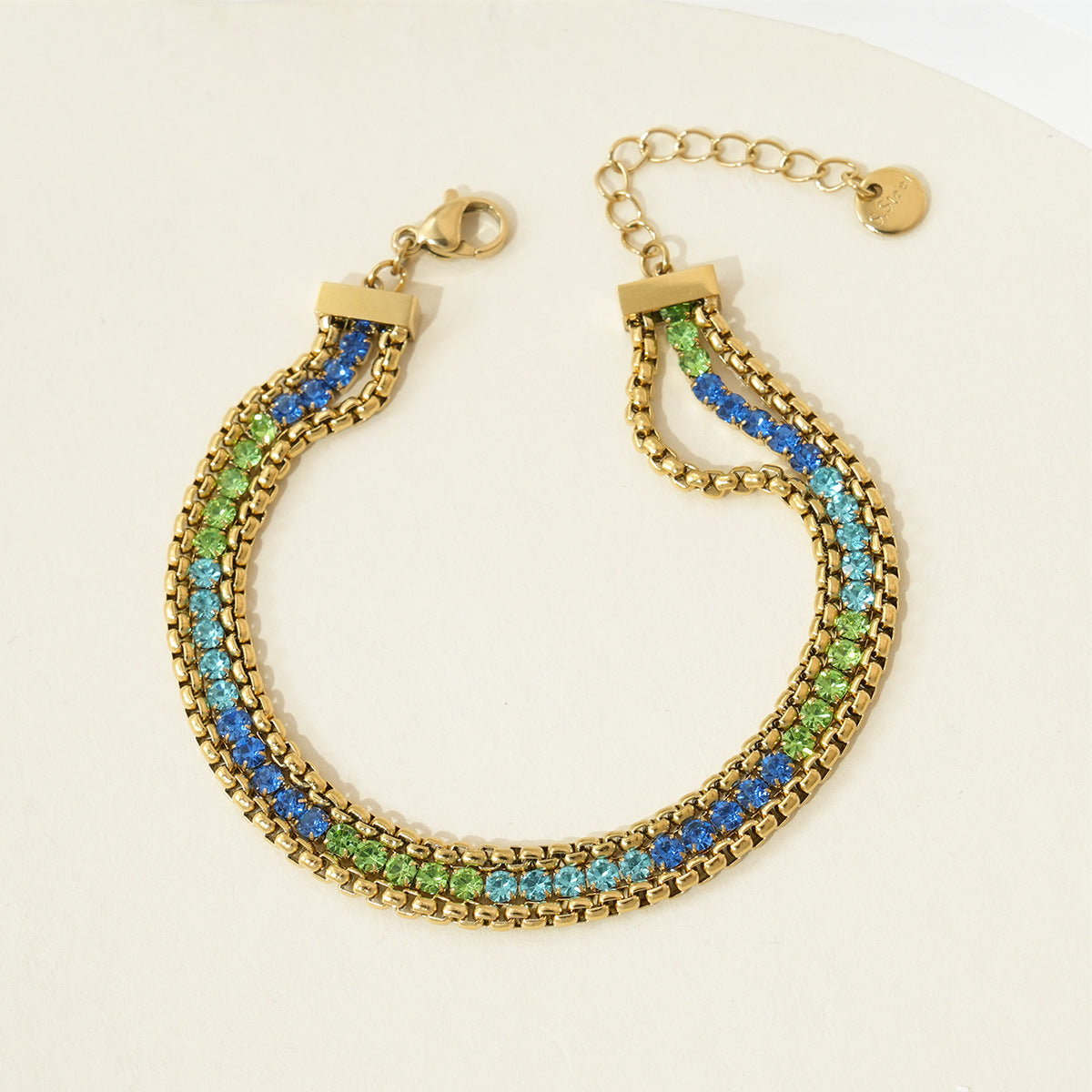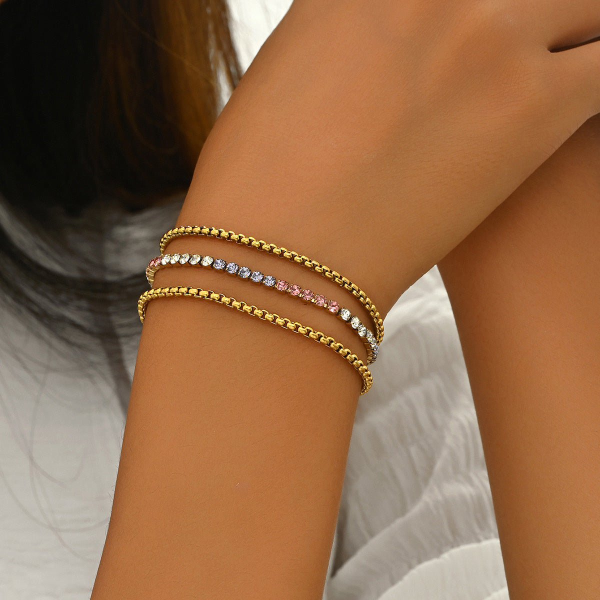 Wholesale Stainless steel bracelet with multiple layers and diamond embellishments.