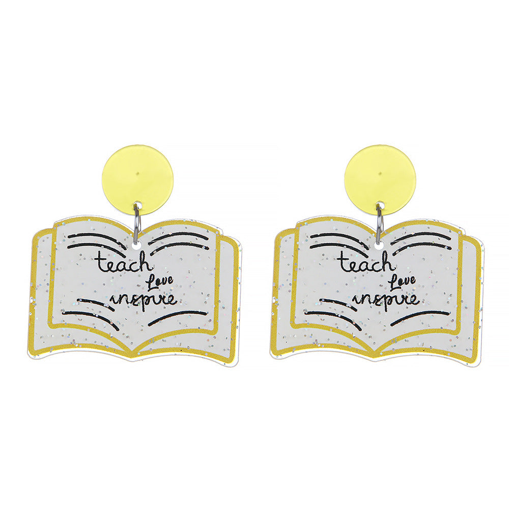 Wholesale Teacher' s Day Pencils Apples Books Cartoon Contrasting Acrylic Earrings