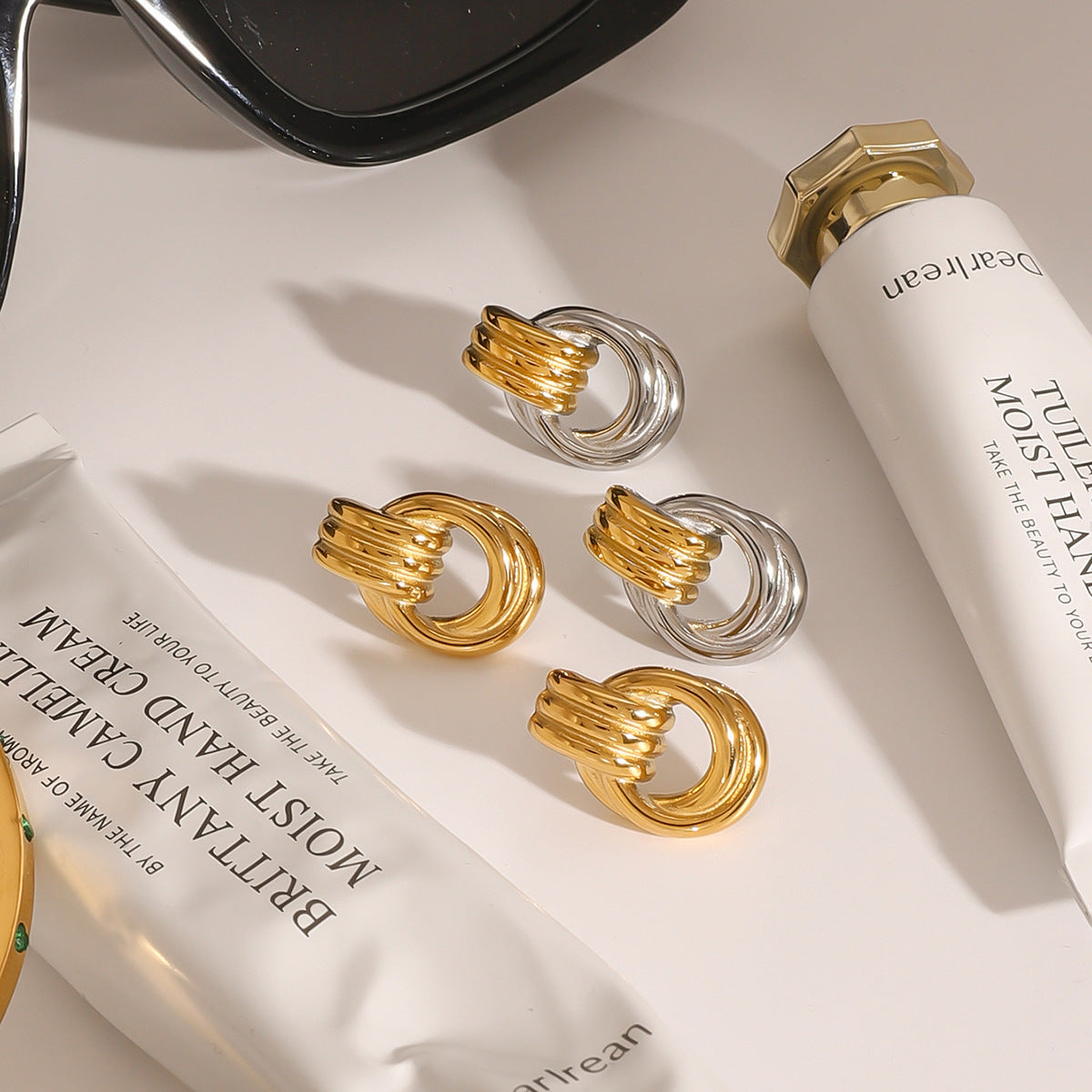 Wholesale 18k gold stainless steel gold and silver color matching earrings