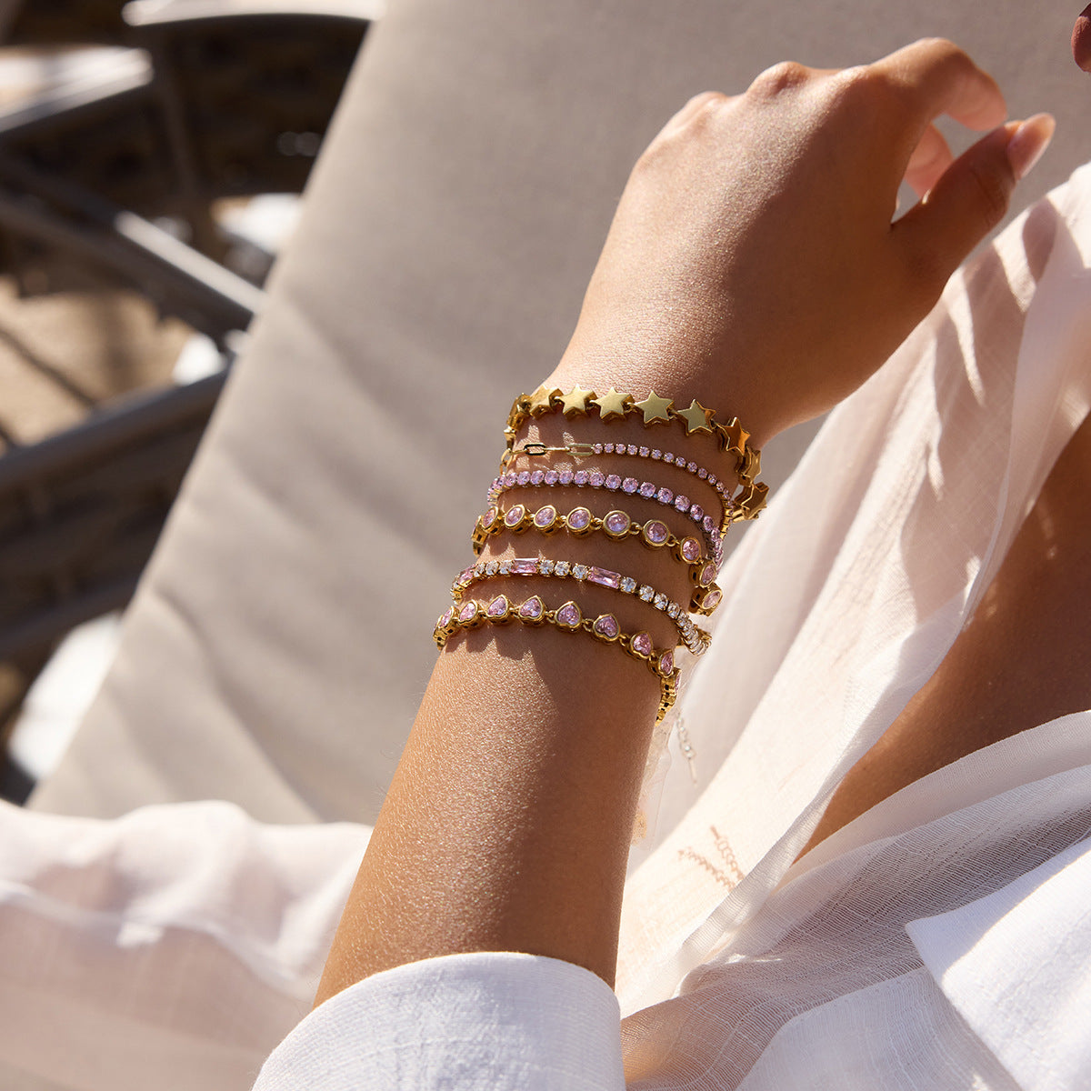 Wholesale 18K Gold Stainless Steel Round Pink Zircon Jewelry Buckle Tennis Chain Bracelet