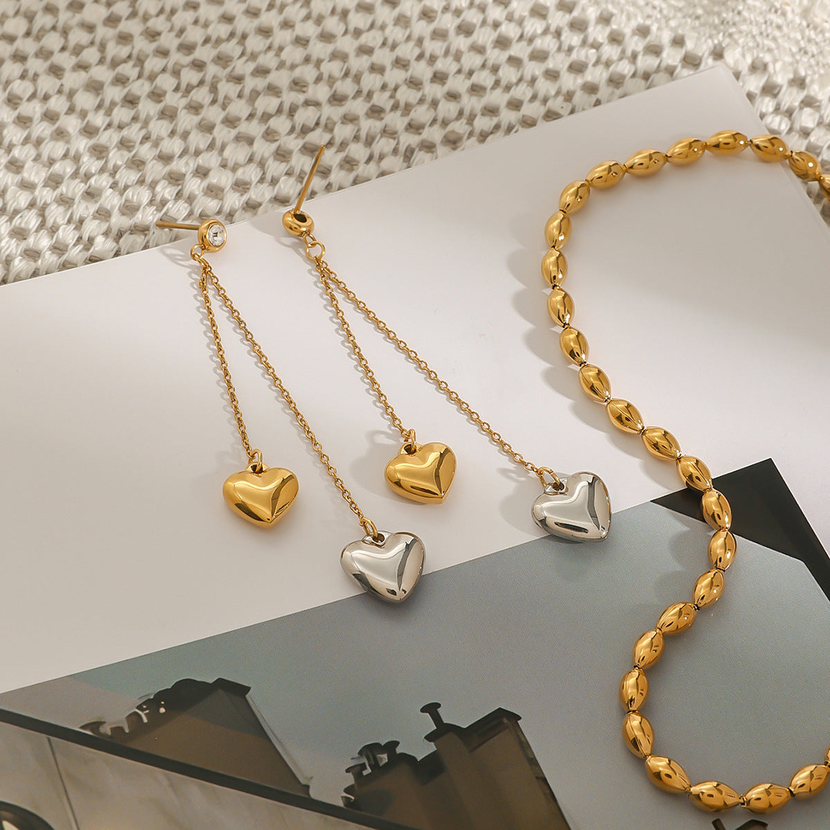 Wholesale 18k gold stainless steel white diamond gold and silver color matching smooth love tassel earrings