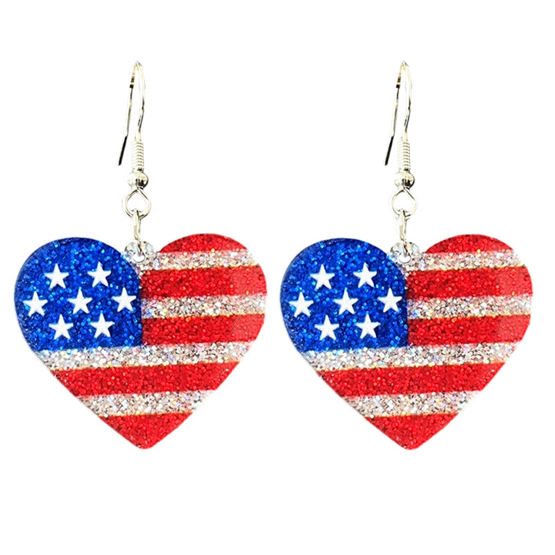 Wholesale American Independence Day metal sparkling acrylic fireworks love earrings