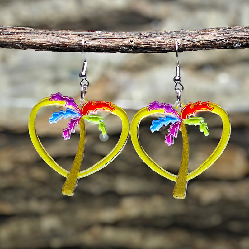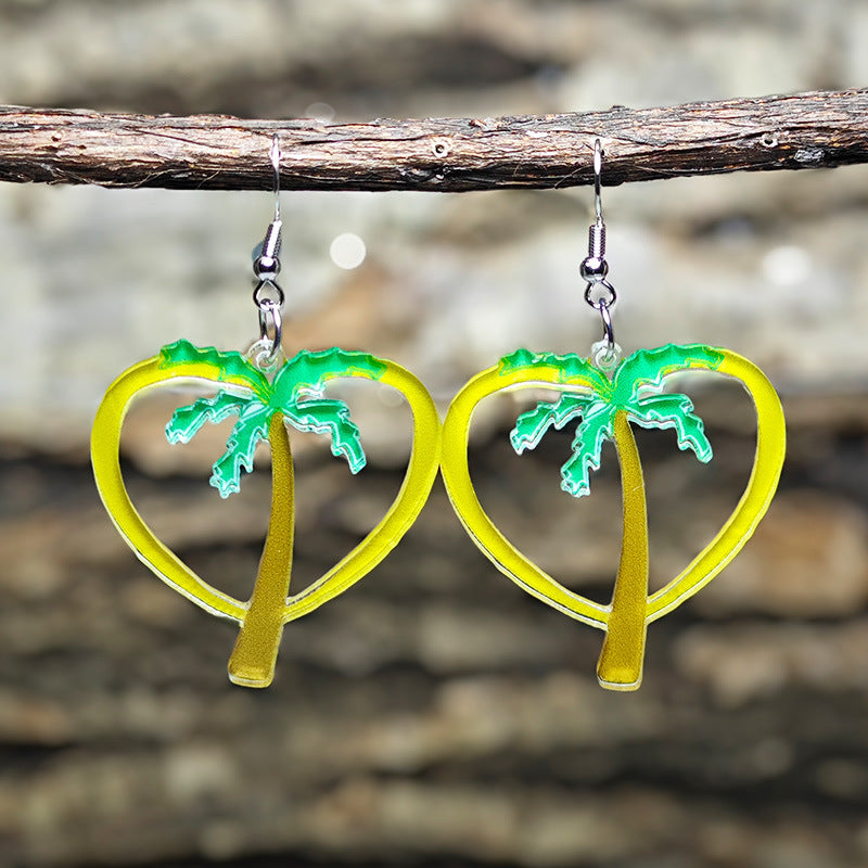 Wholesale Beach earrings coconut tree hollow heart hanging earrings