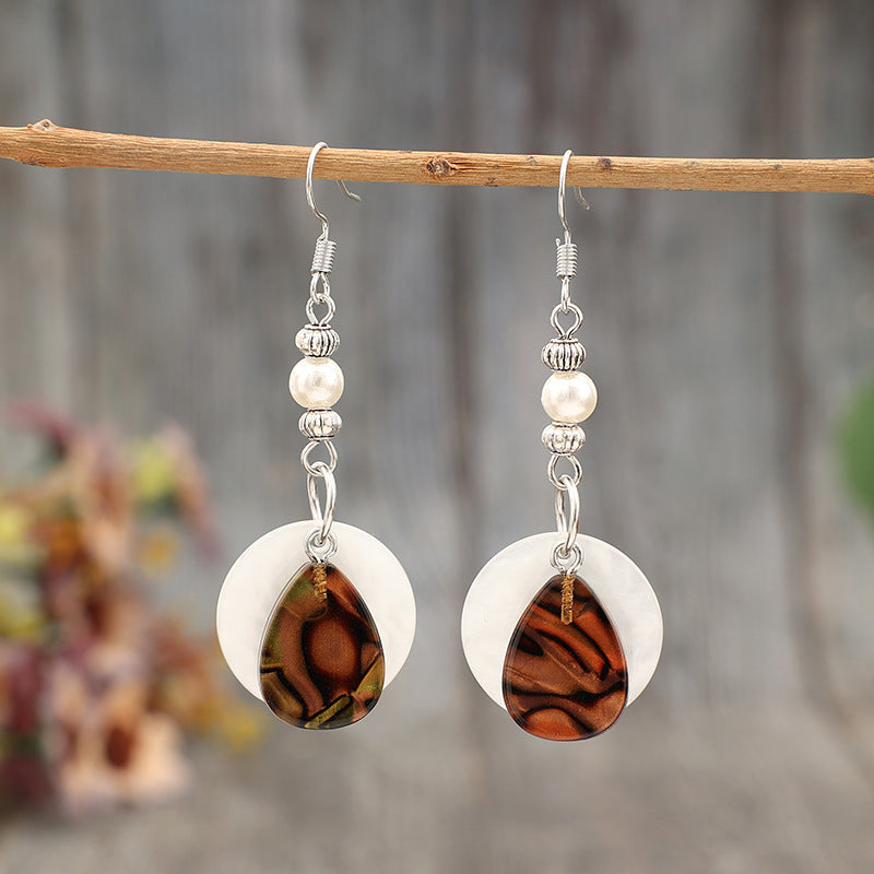 Wholesale Bohemian Style Alloy Round Spliced Acrylic Drop Earrings