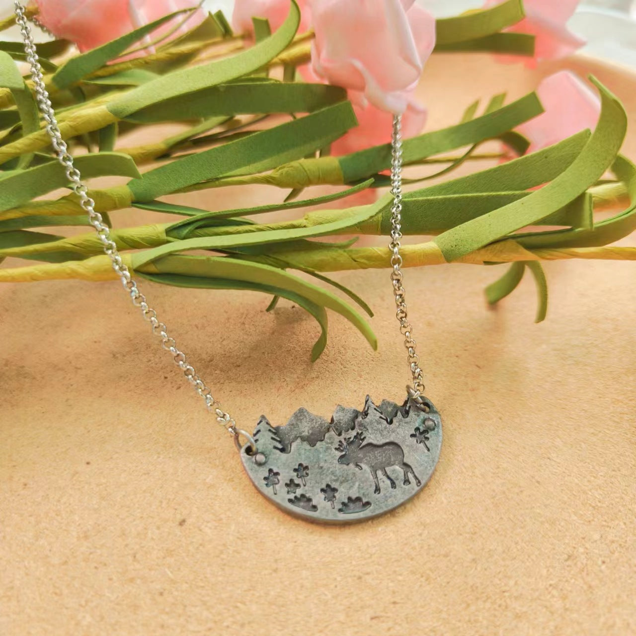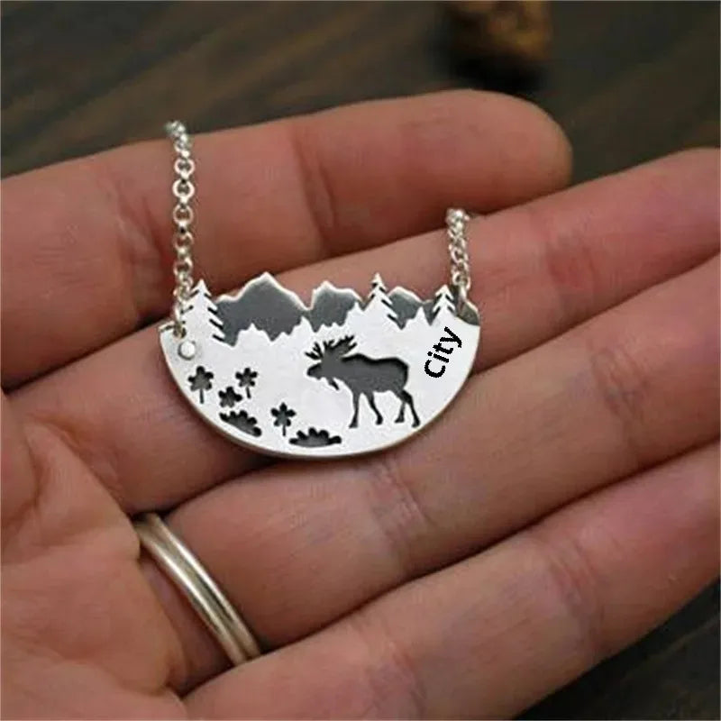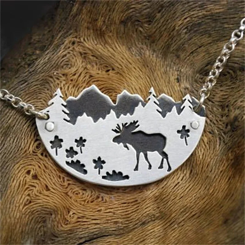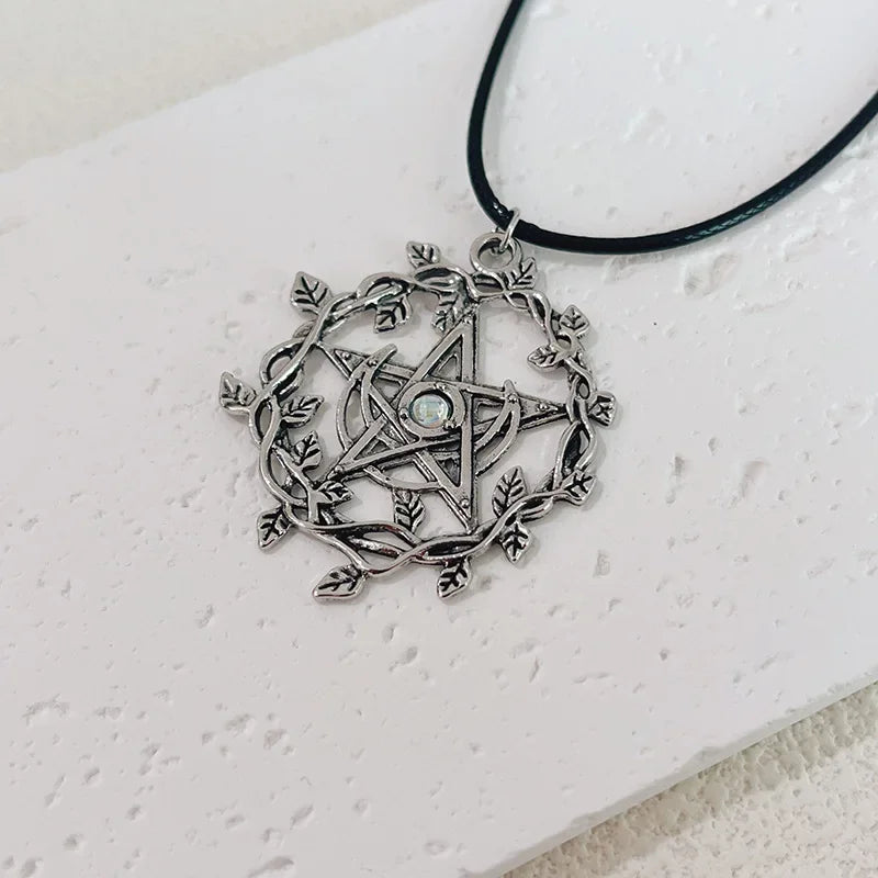 Wholesale creative elk semicircle old pentagram vine necklace