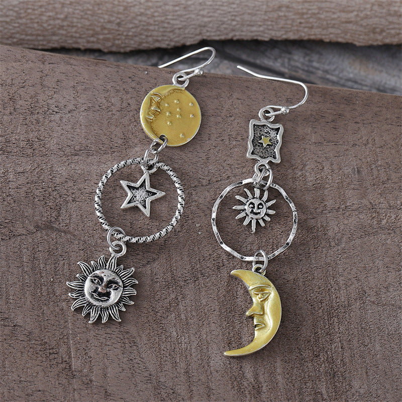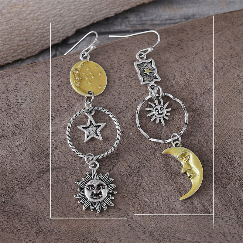 Wholesale Creative Sun Moon Asymmetric Pendant Earrings
