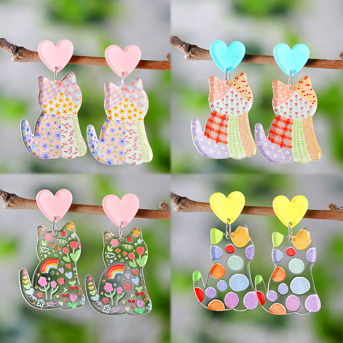Wholesale Cute Flowers Rainbow Wave Dot Cat Love Acrylic Pendant Earrings