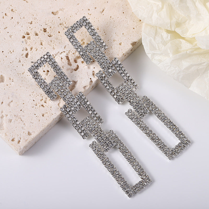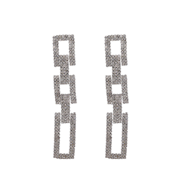 Wholesale Diamond Geometric chain tassel earrings