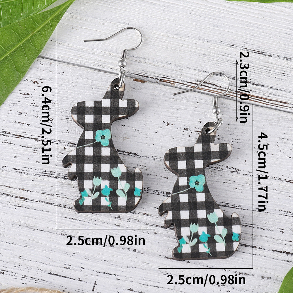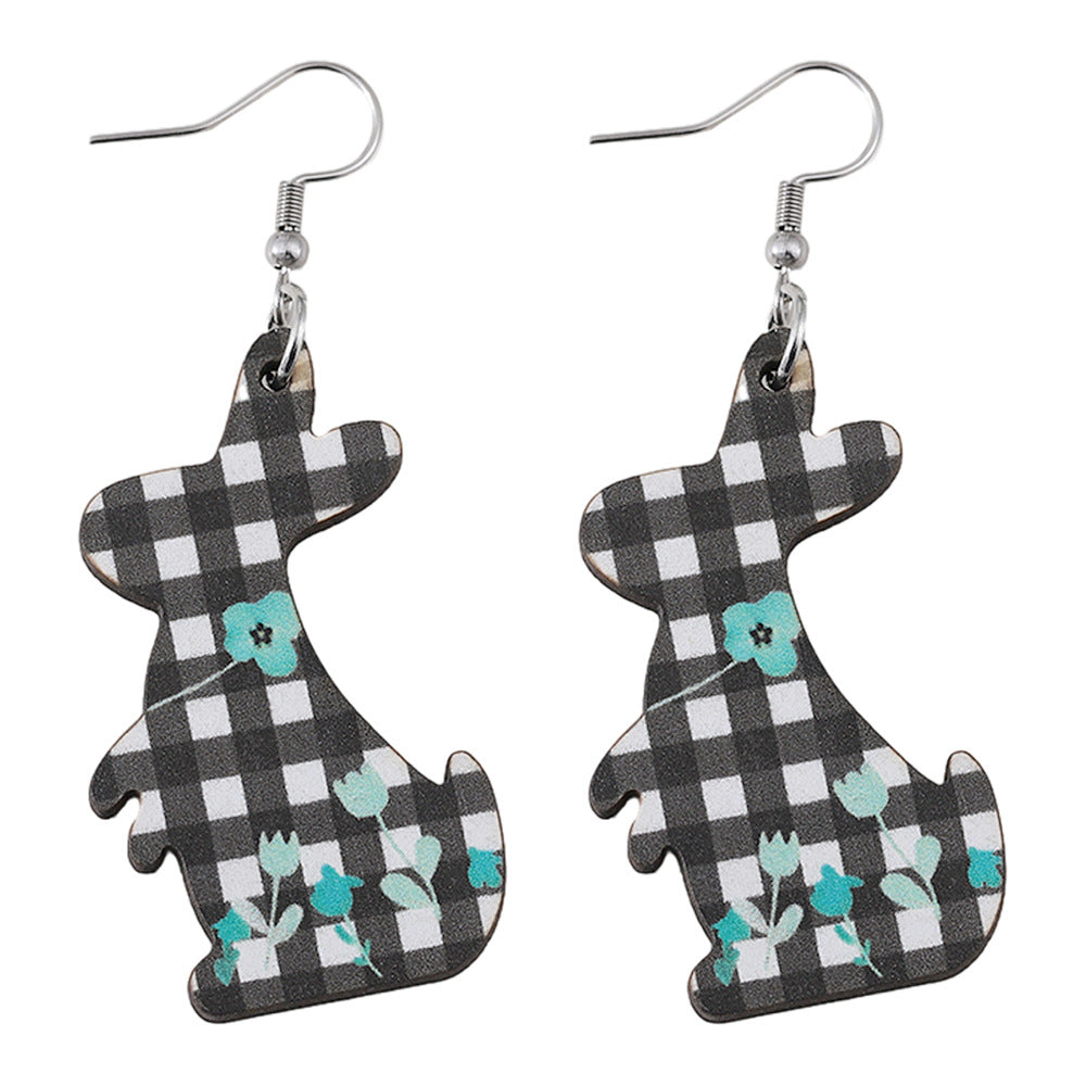 Wholesale Easter Black and White Check Flower Bunny Pendant Earrings