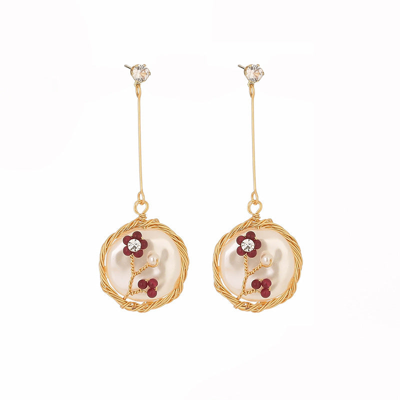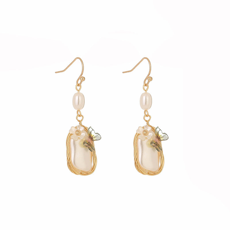 Wholesale Handmade Winding Pearl Earrings Long Tassel Butterfly Flower Earrings
