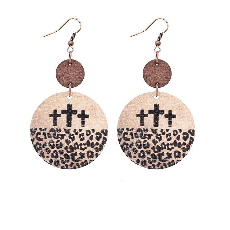 Wholesale Fashion Retro Leopard Wood Pieces Earrings