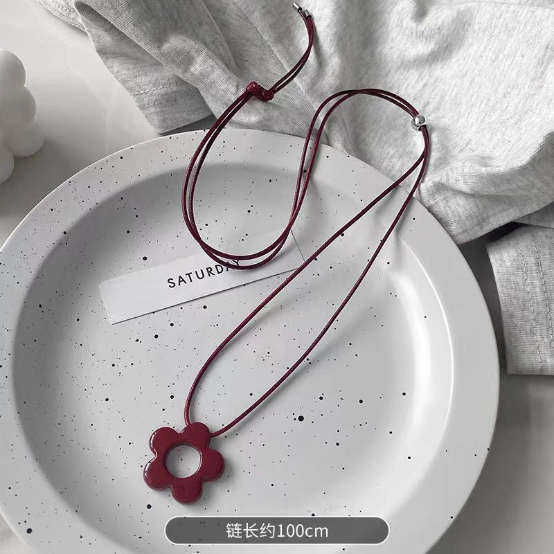 - Angora red flower necklace