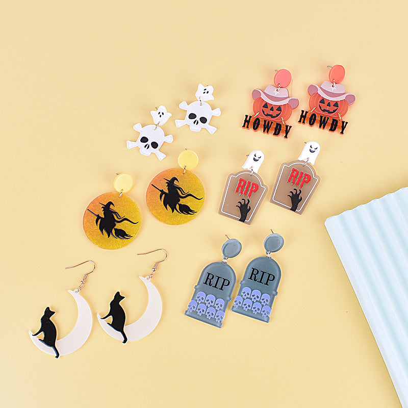 Wholesale Halloween Earrings Witch Tombstone Scream Ghost Acrylic Earrings