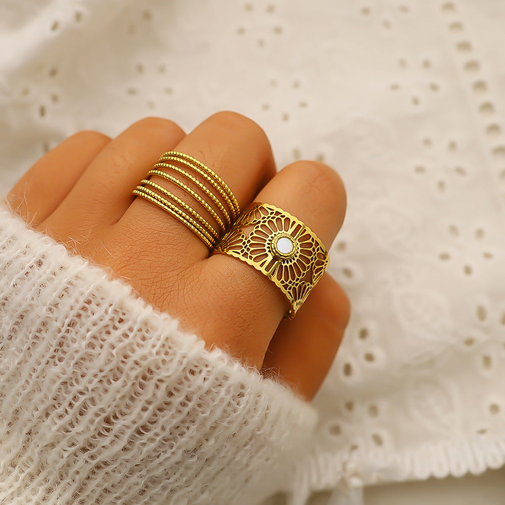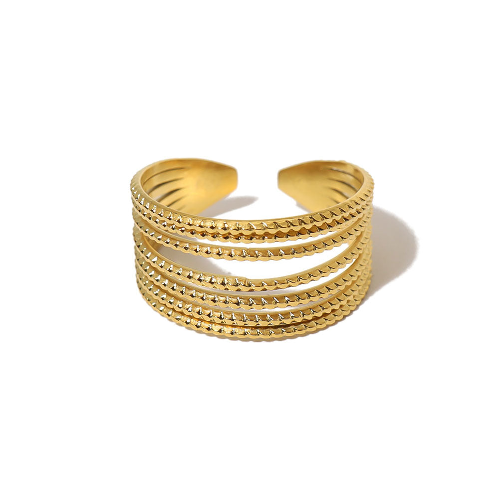 Wholesale irregular trendy ring non-fading titanium steel plated 18K gold open ring