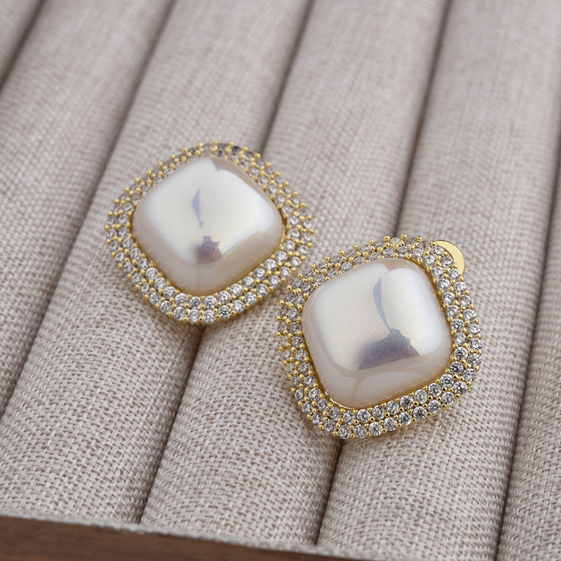 Wholesale Light Luxury Pearl Earrings Zircon Earrings
