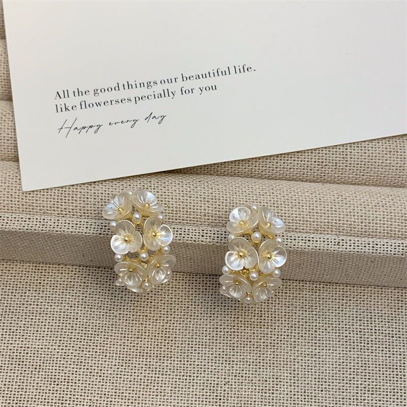 Wholesale Light Luxury Shell Flower Earrings