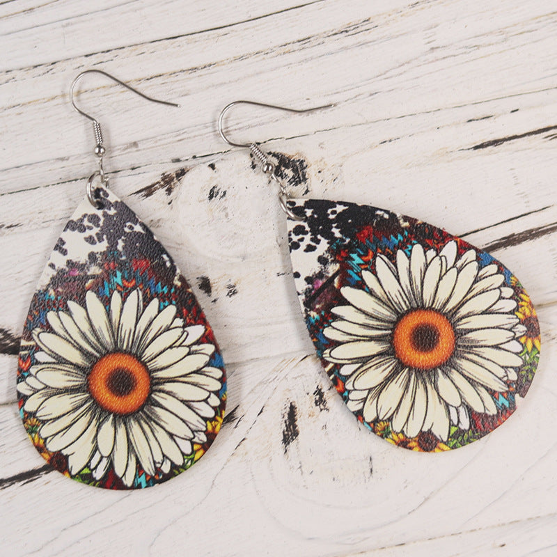 Wholesale Cute Sunflower Leopard Print Leather Earrings
