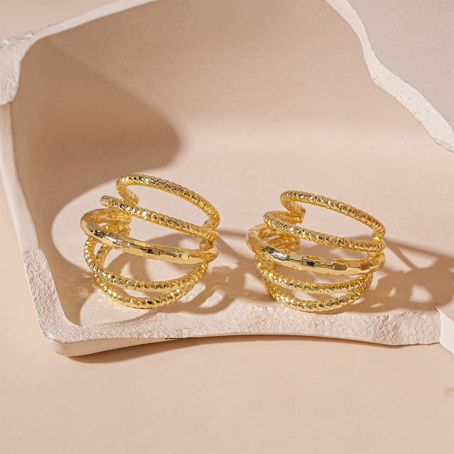 Wholesale Multi-Layer C- Shaped Geometric Silver Needle Earrings