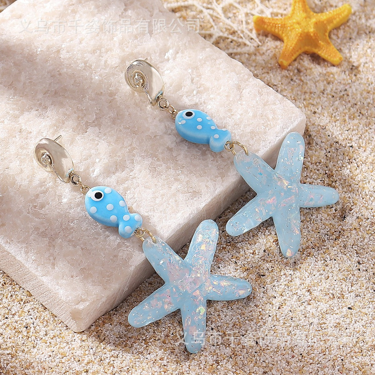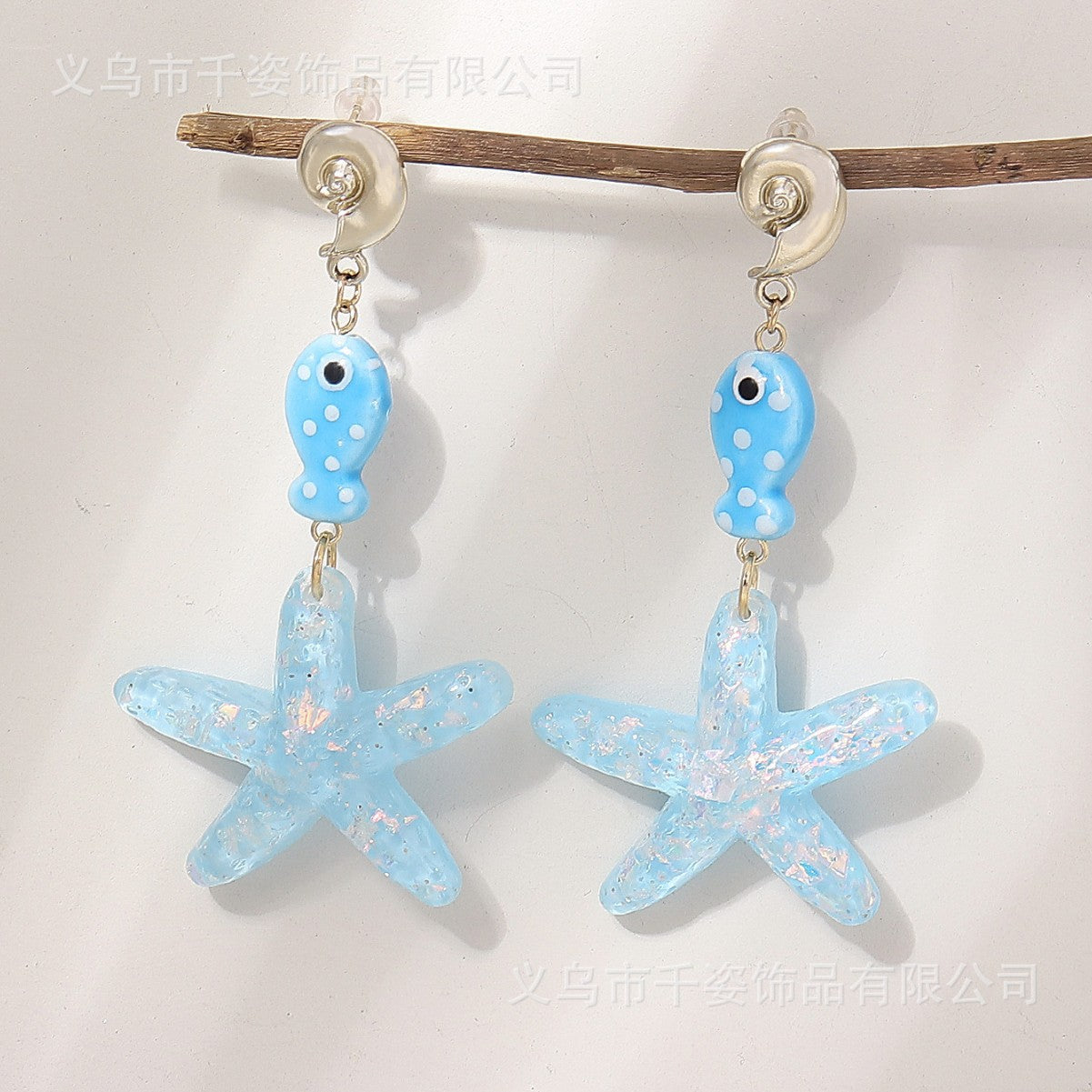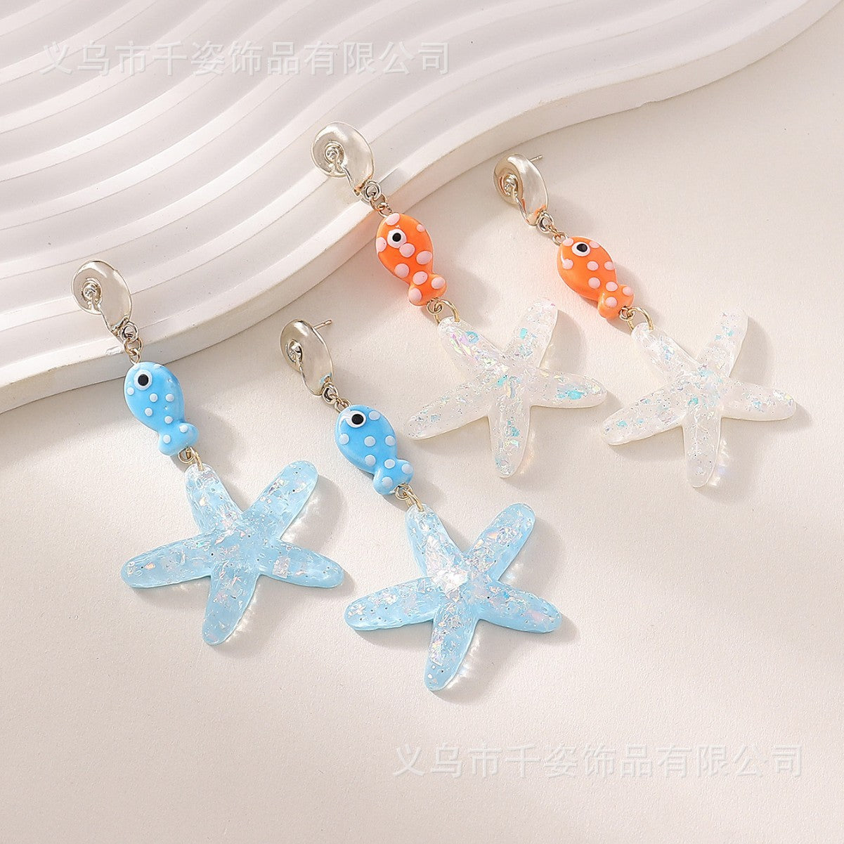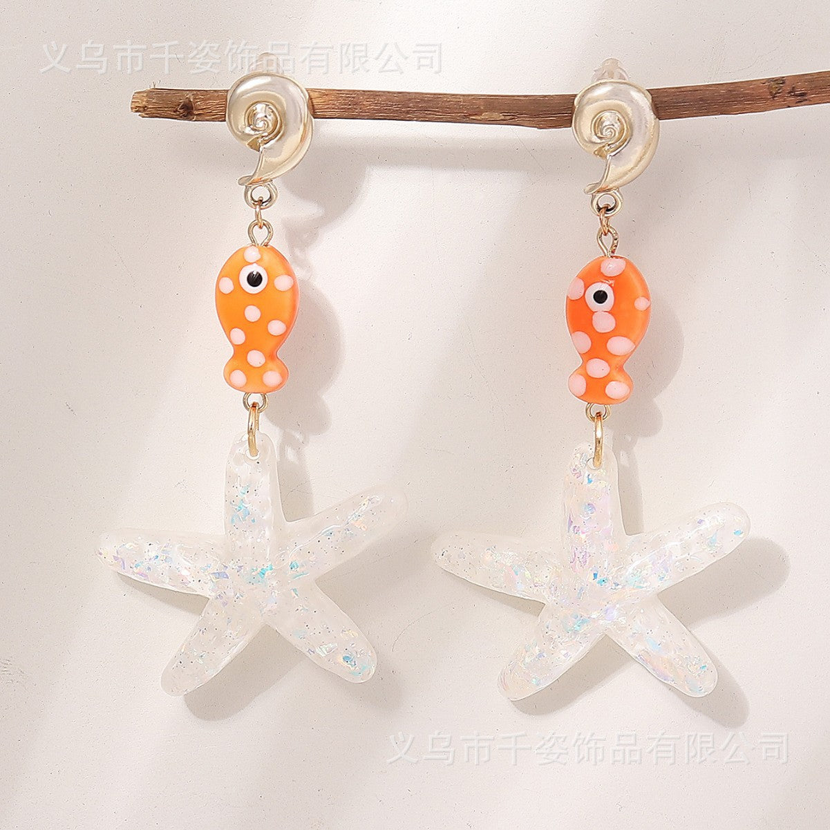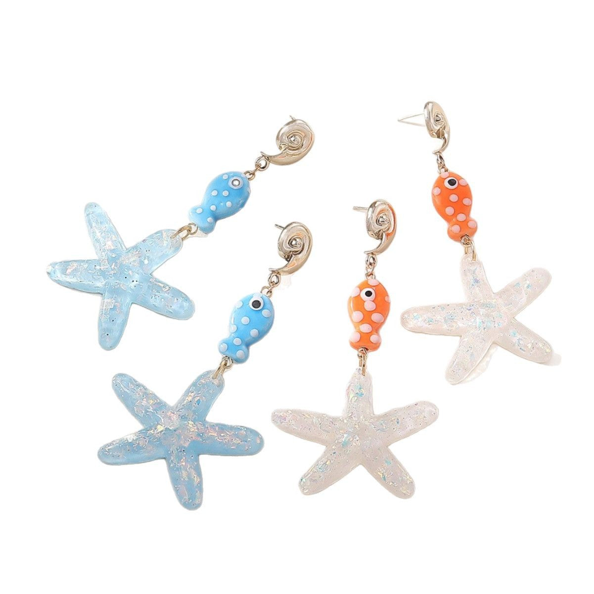Wholesale Ocean starfish pendant cute polka dot marine fish necklace conch earrings