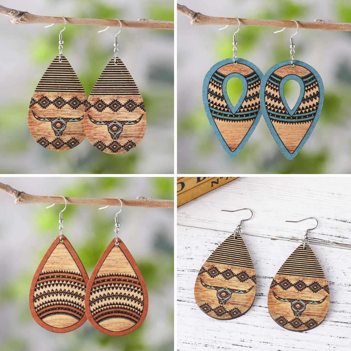 Wholesale personalized Aztec earrings Mother's Day gift Western Denim goat earrings