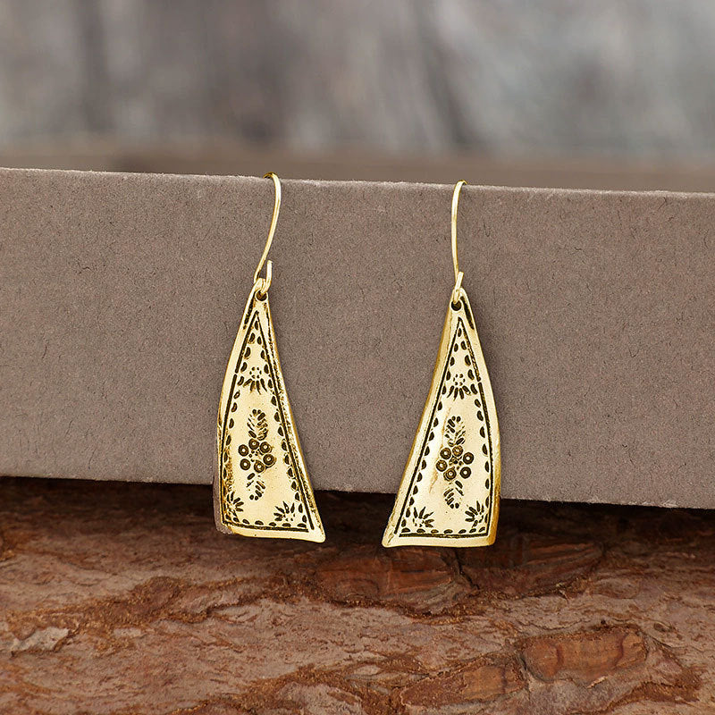 Wholesale Retro Bohemian Geometric Carved Flower Alloy Earrings