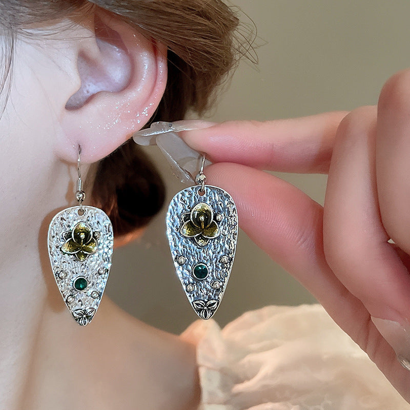 Wholesale Retro distressed metallic diamond flower drop earrings