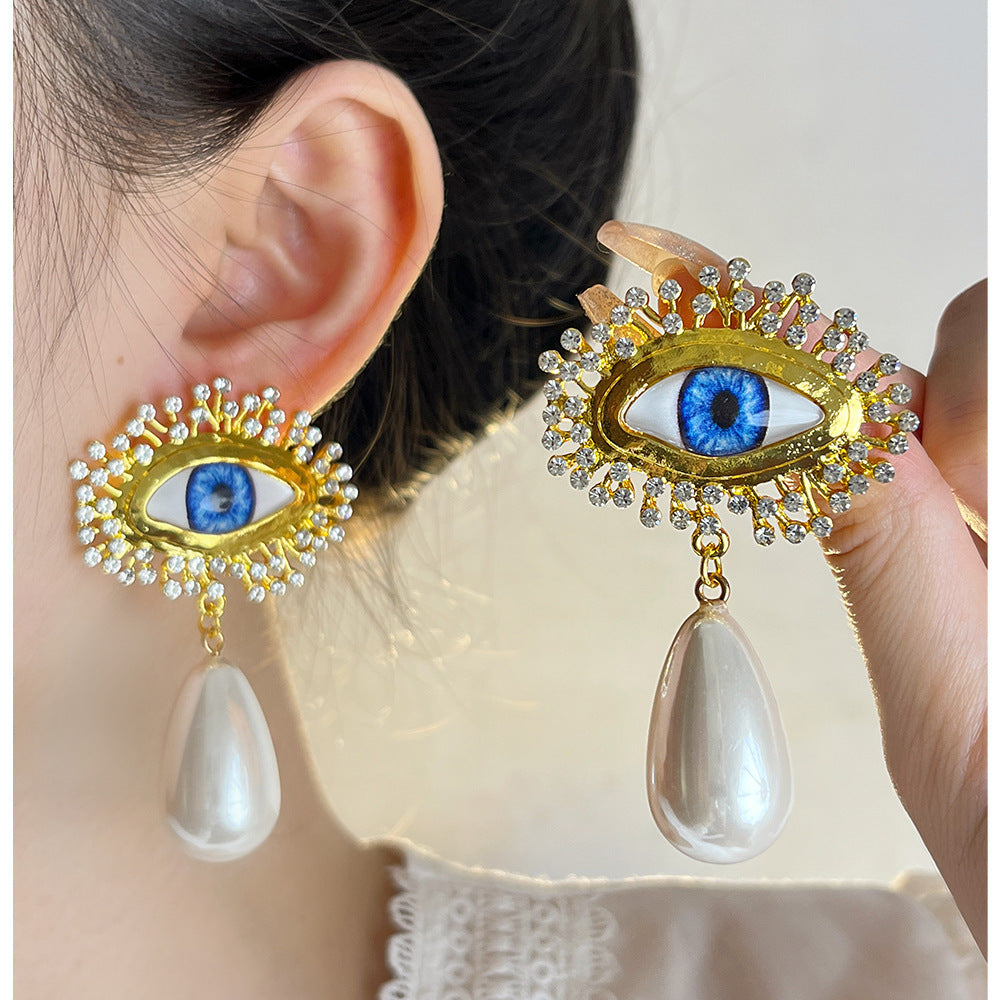 - 925 silver needle--blue eye earrings