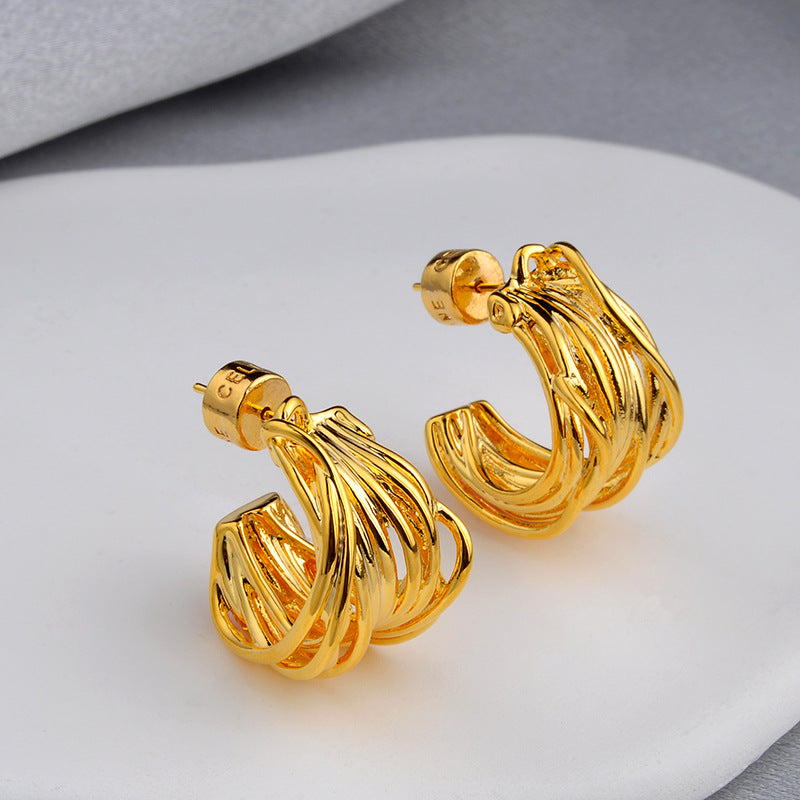 Wholesale retro high-grade light luxury earrings C- shaped irregular rattan earrings