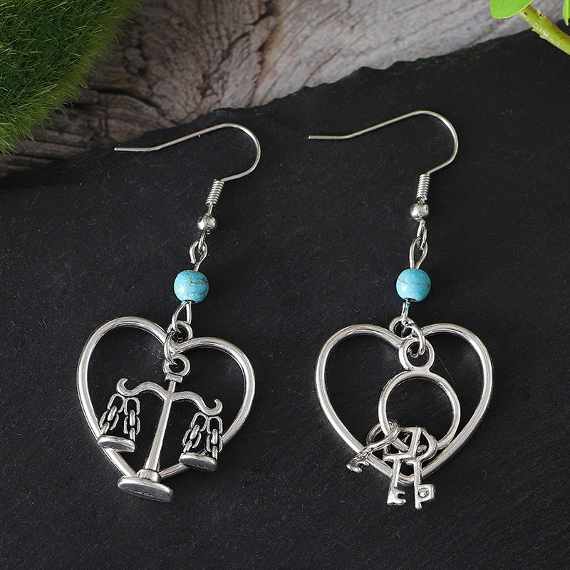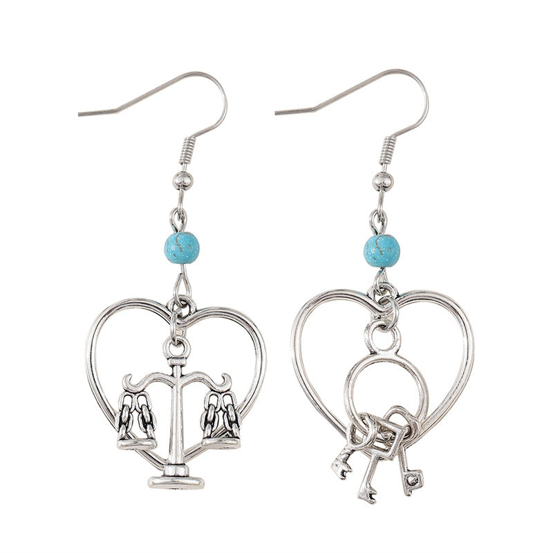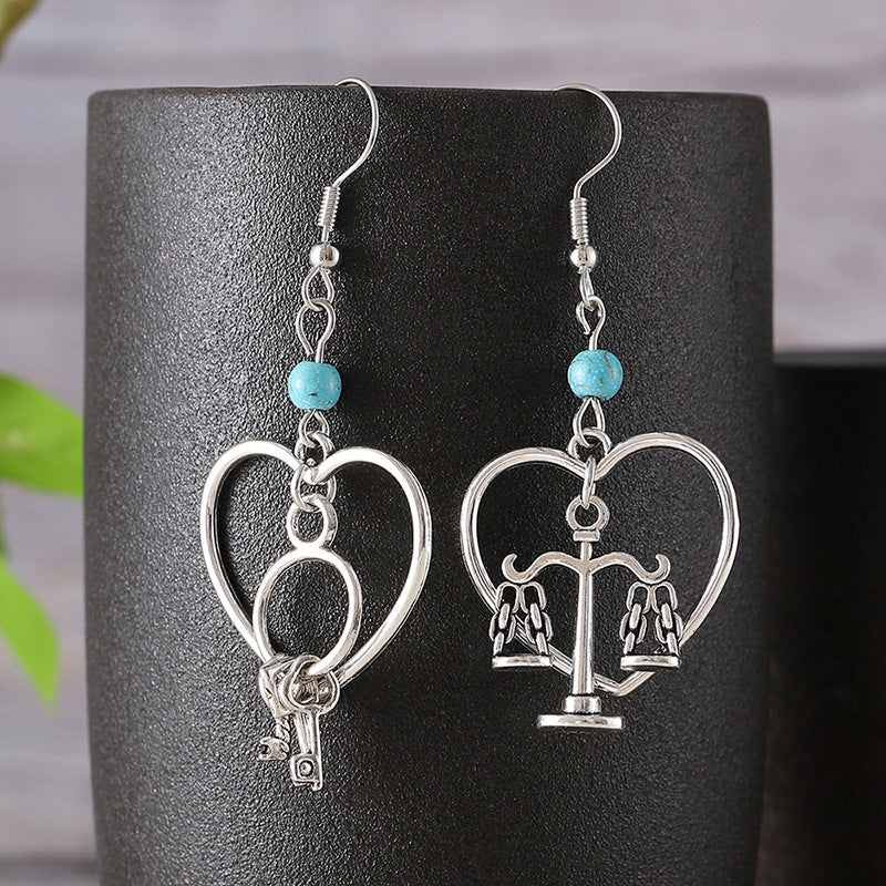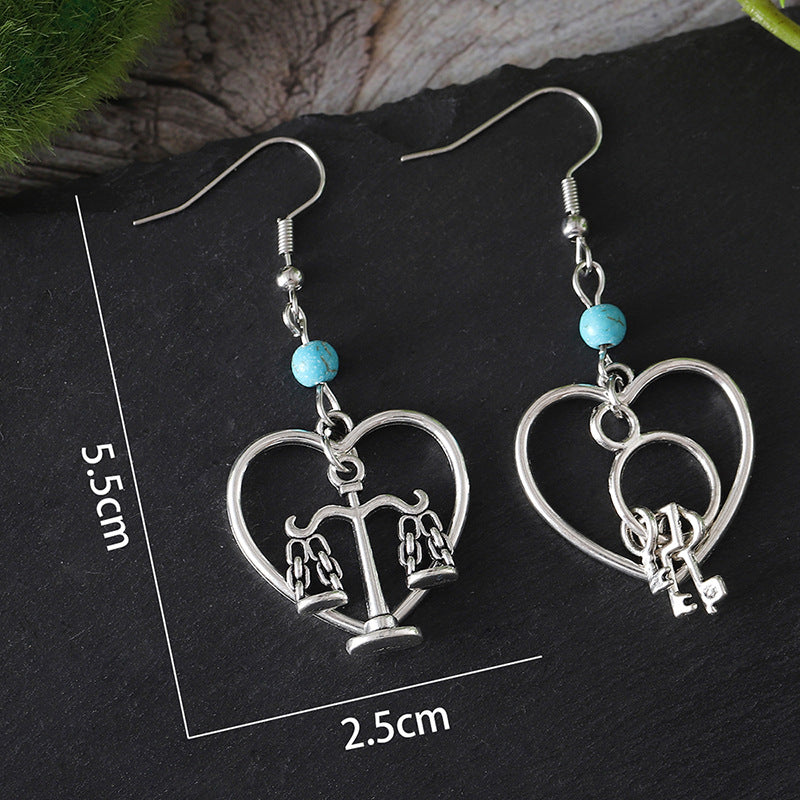 Wholesale Retro Key Lock Balance Pendant Earrings