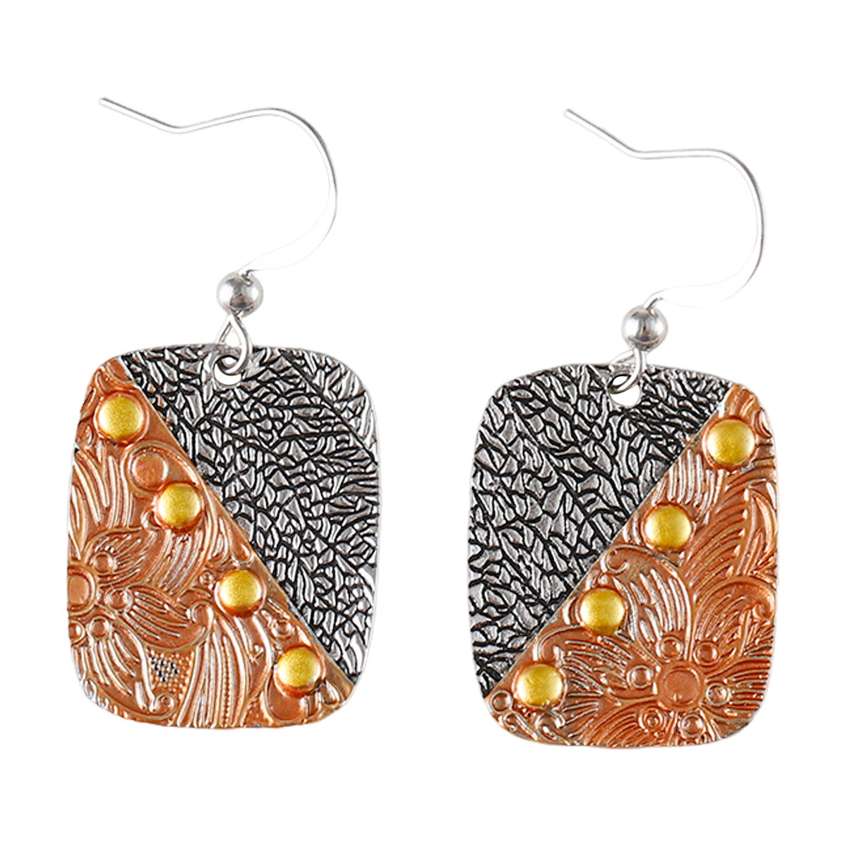 Wholesale Retro Old Carved Vein Pattern Geometric Square Earrings