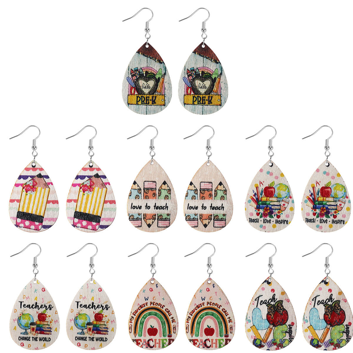 Wholesale School season teacher student drop-shaped wooden earrings