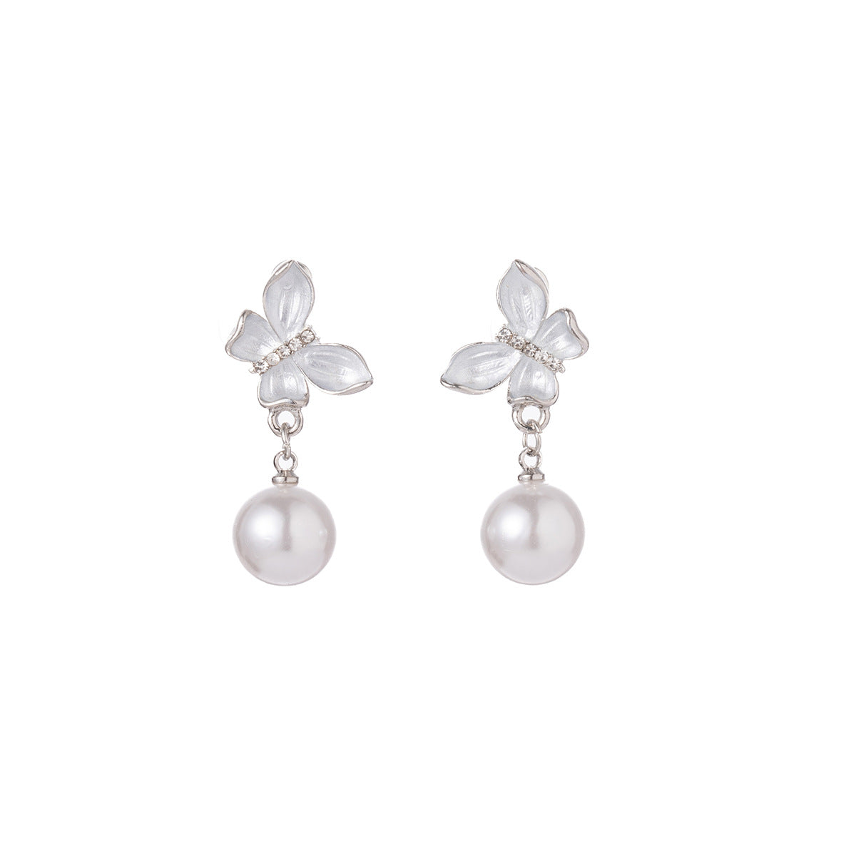 Wholesale Silver needle butterfly pearl stud earrings