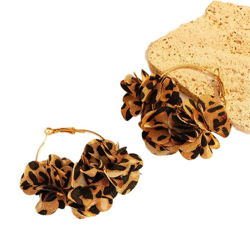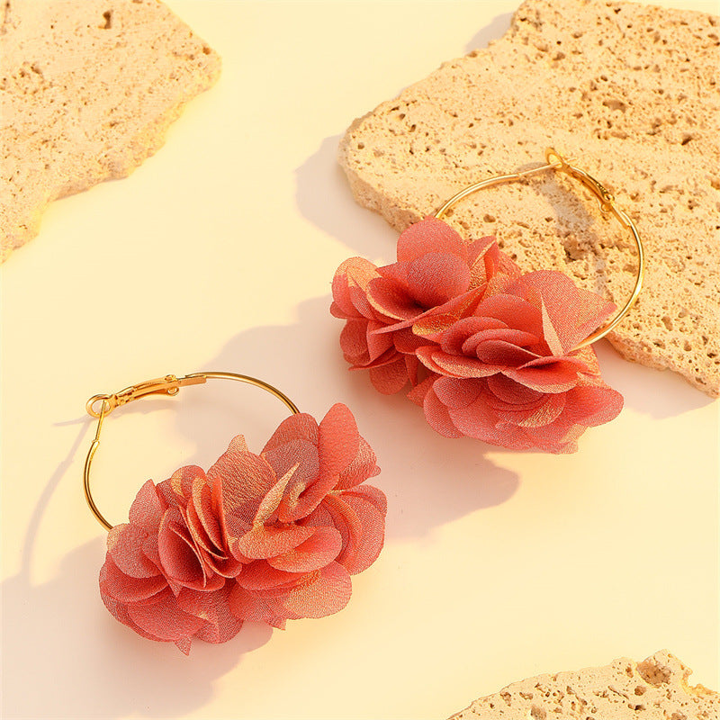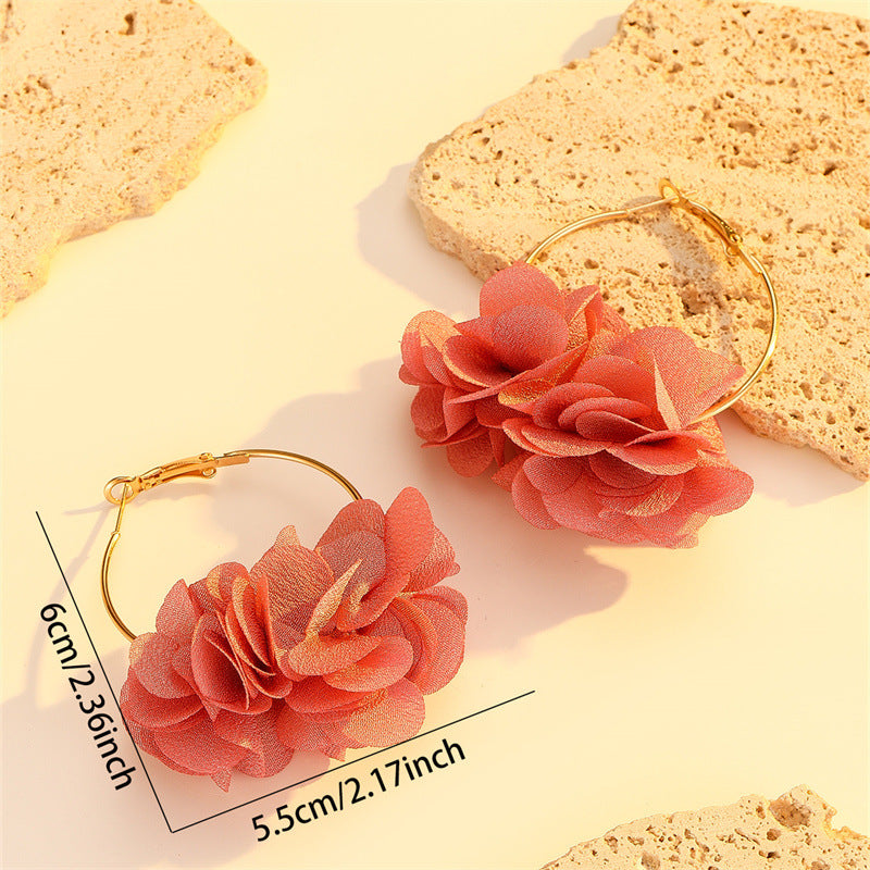 Wholesale Silver Needle Fabric Flower Tassel Earrings