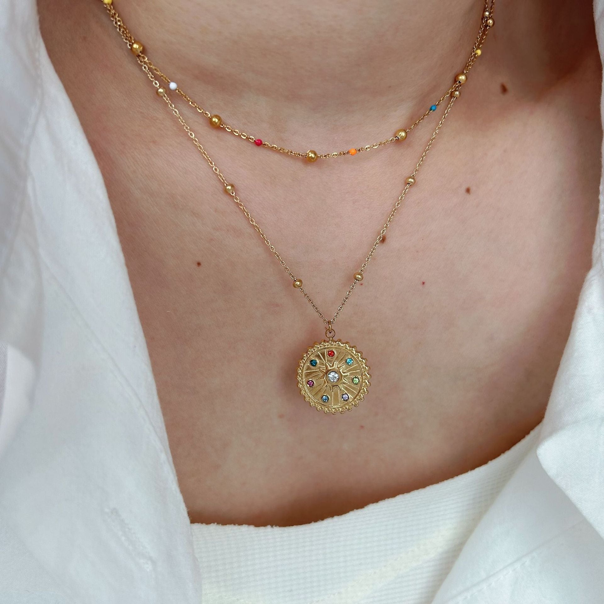 - Colored diamond compass necklace