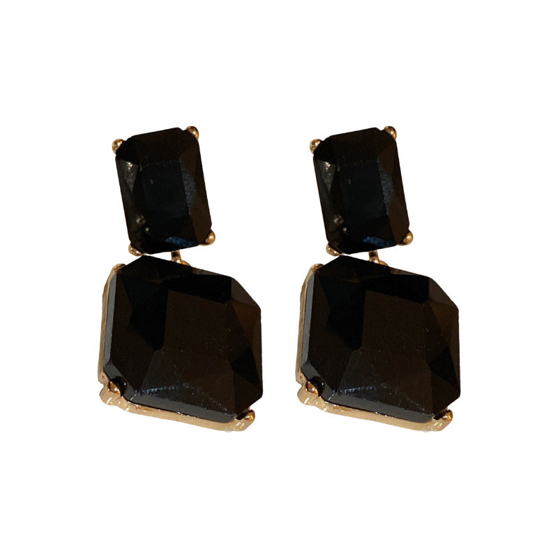 - Silver Needle-Gold Transparent Square Earrings