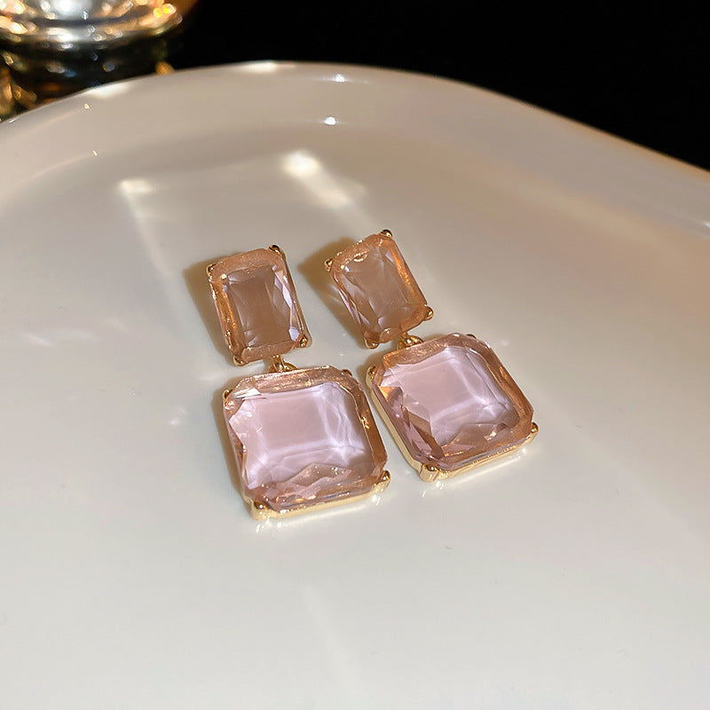 - Silver Needle-Pink Transparent Square Earrings