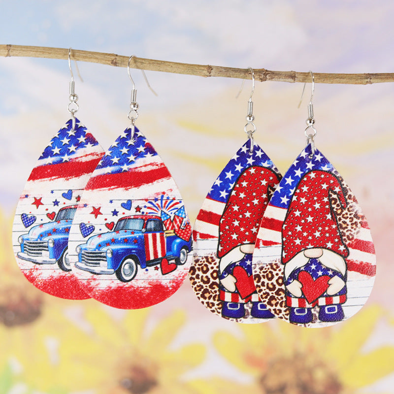 Wholesale US Independence Day Dressed Sunflower Pentagram Hat Women Leather Earrings