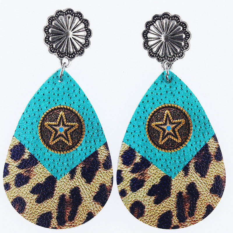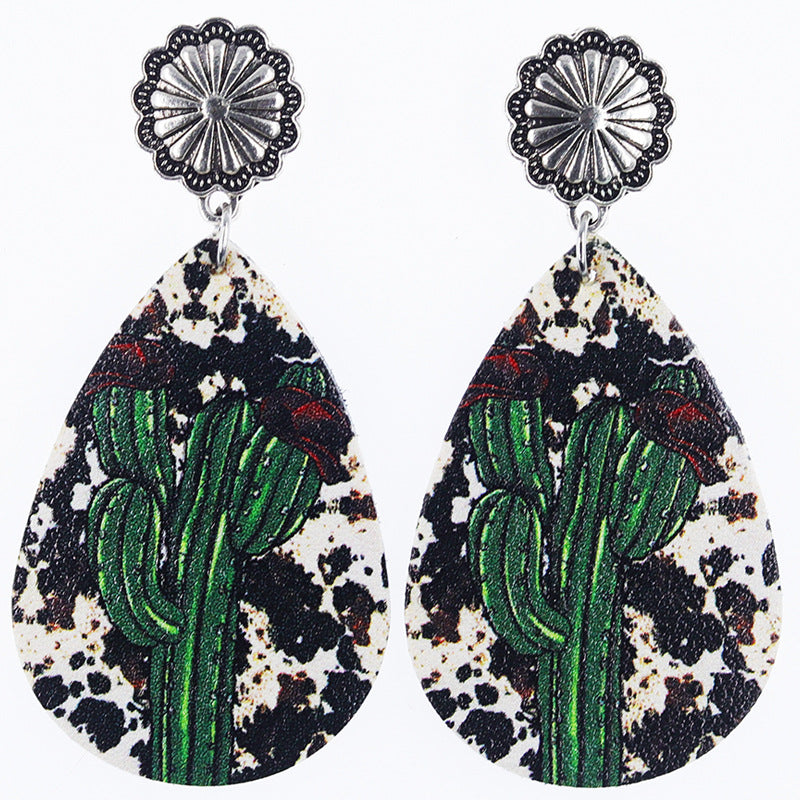 Wholesale Western Denim distressed cowboy boots cactus leather earrings