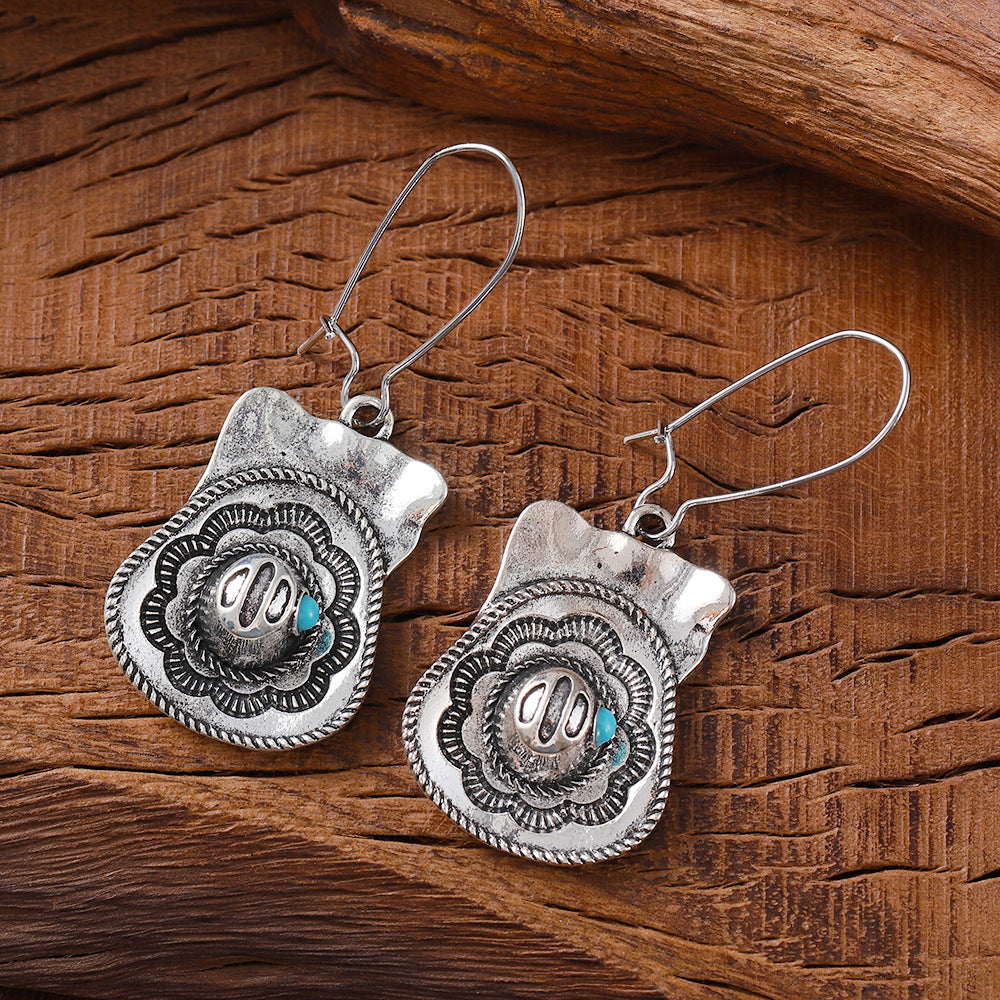 Wholesale Western Denim Hat Pendant Vintage Earrings