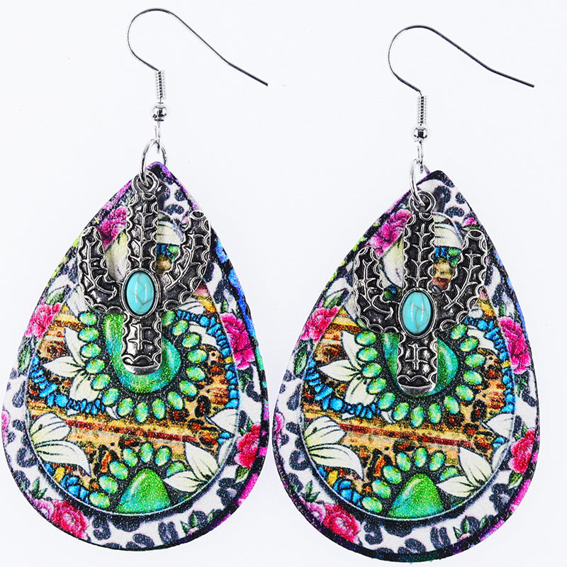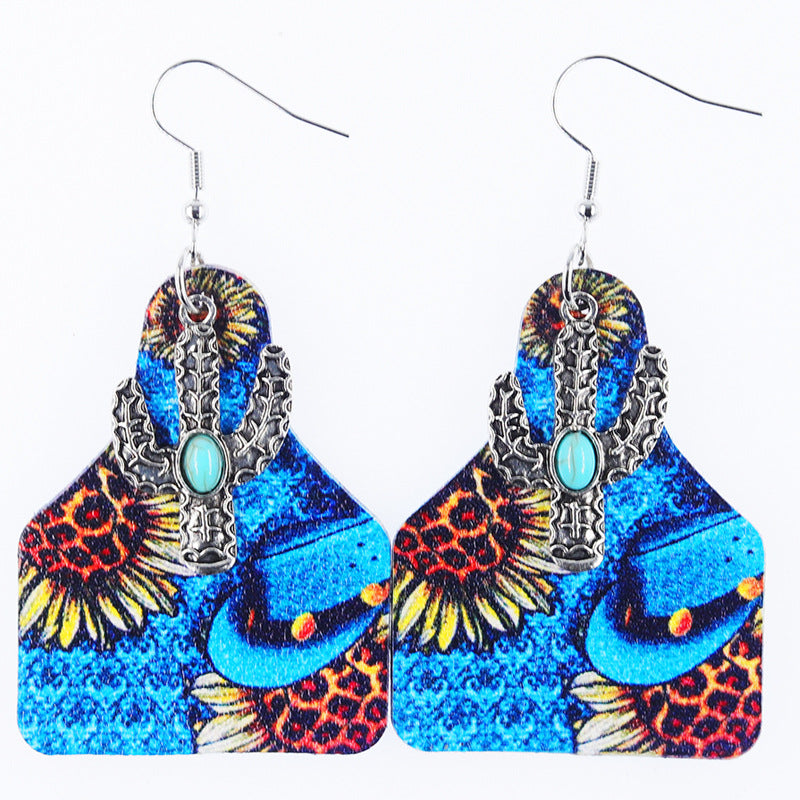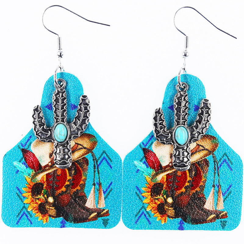 Wholesale Western Denim style distressed Denim leather earrings