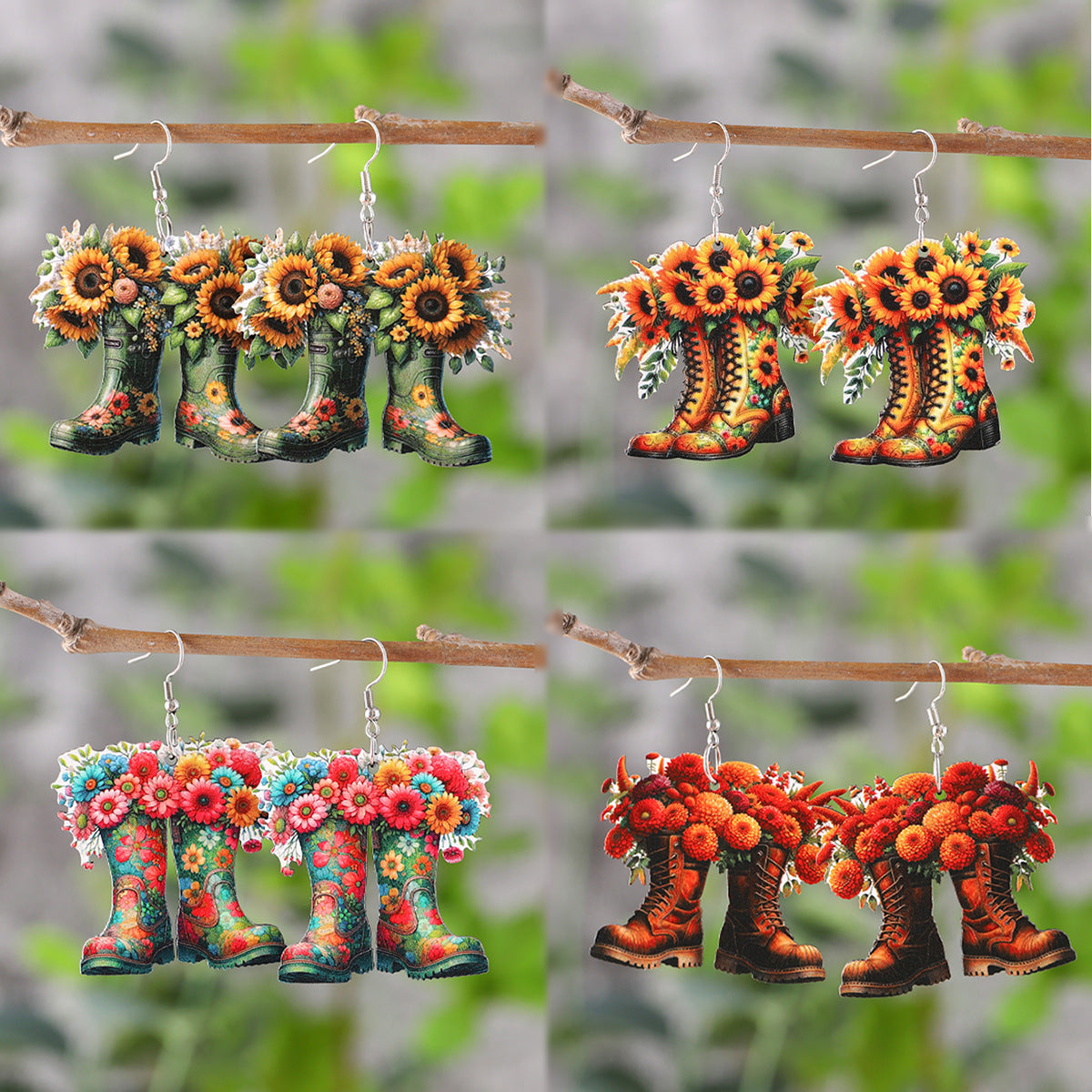 Wholesale Western Spring Summer Daisy Sunflower Western Denim Boots Earrings