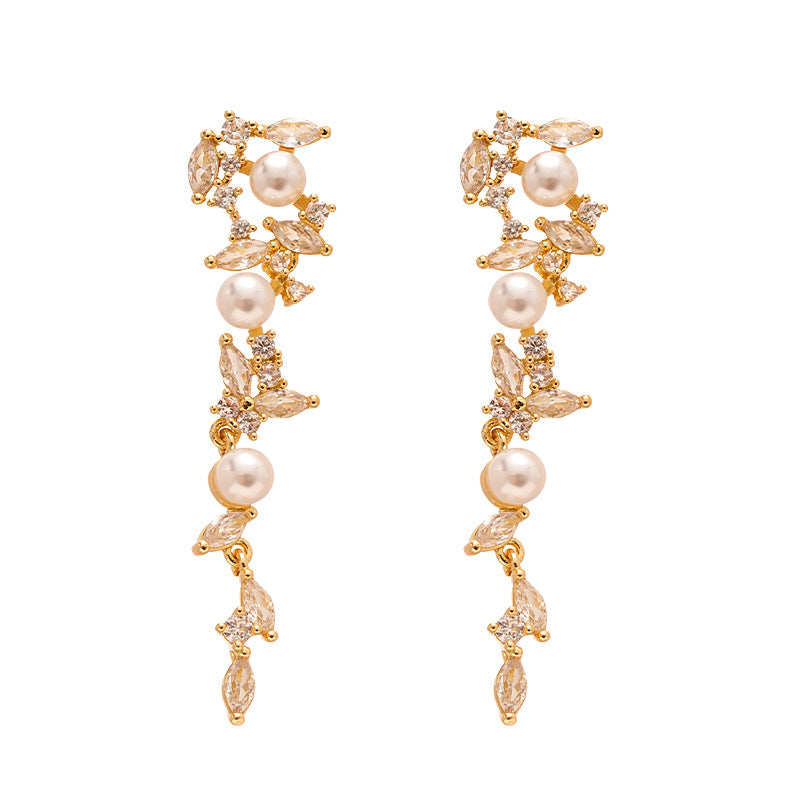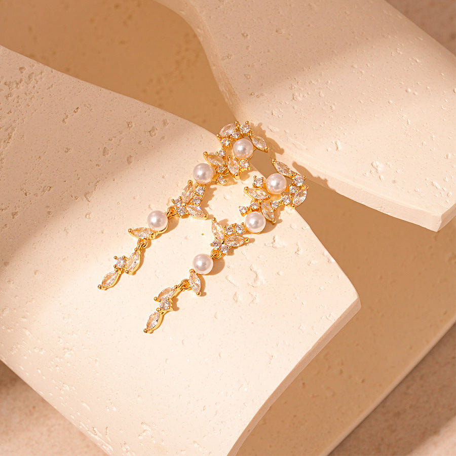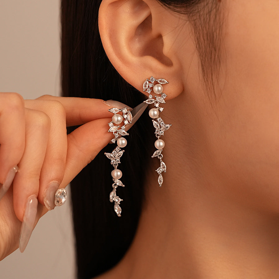 Wholesale zircon wheat grain grain pearl silver pin earrings