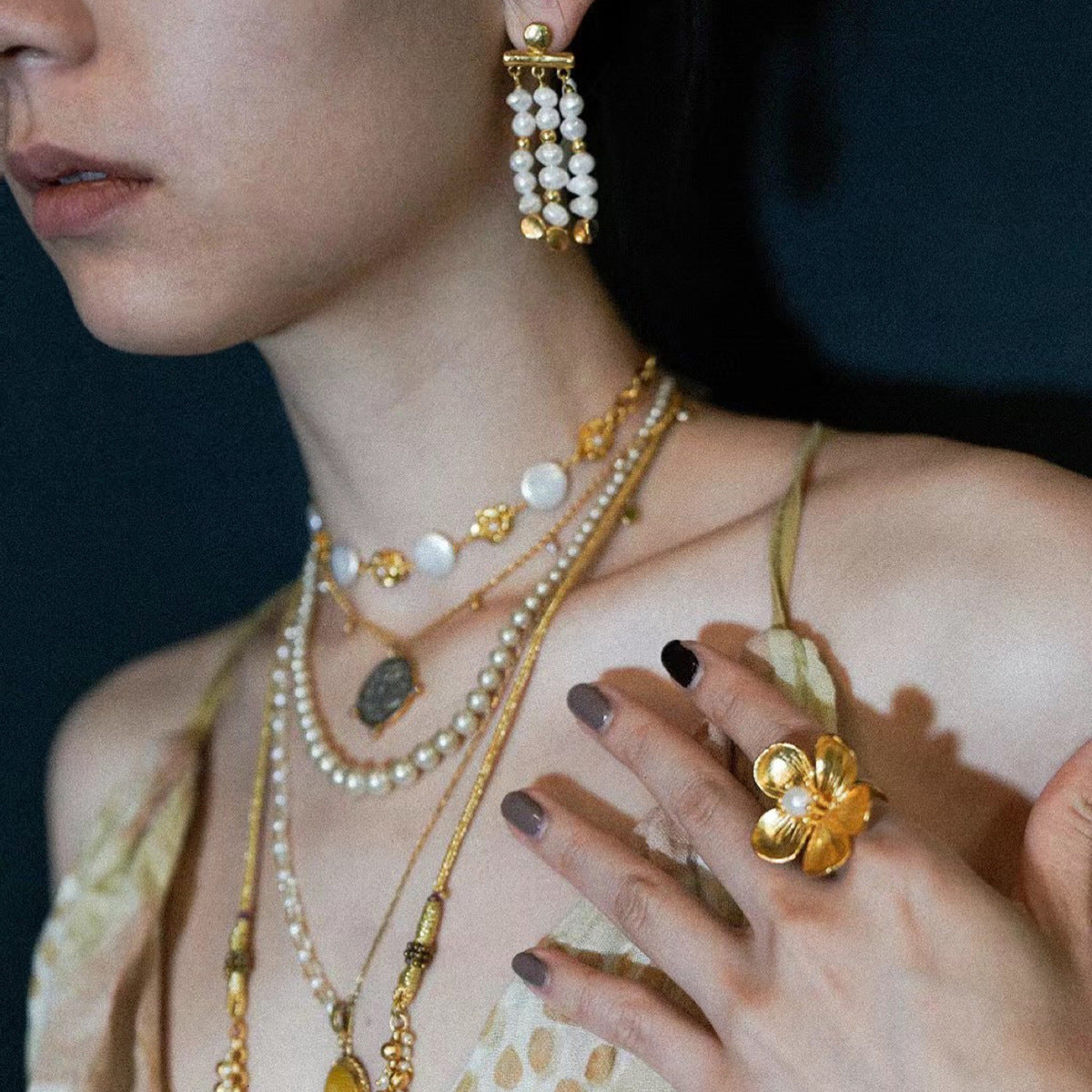 Wholesale 18k gold stainless steel flower pearl opening ring