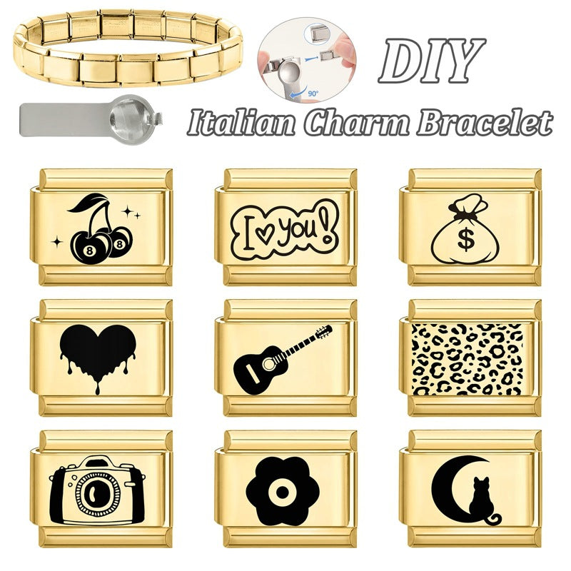 Wholesale Italian Charm Bracelet 9mm DIY Splicing Creative Pattern Stainless Steel Composable Bracelet
