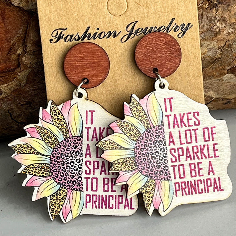 Wholesale sunflower wooden colorful letters earrings